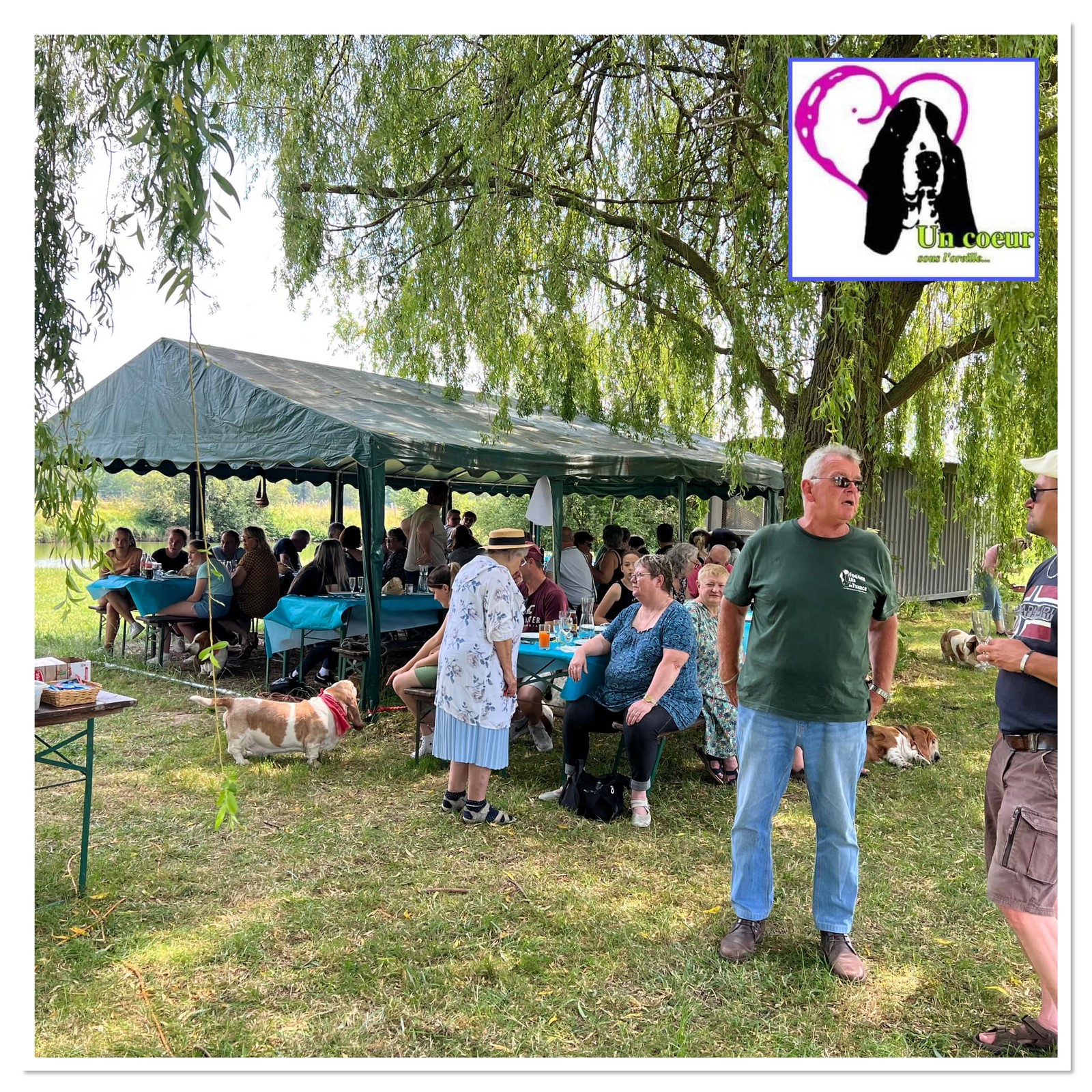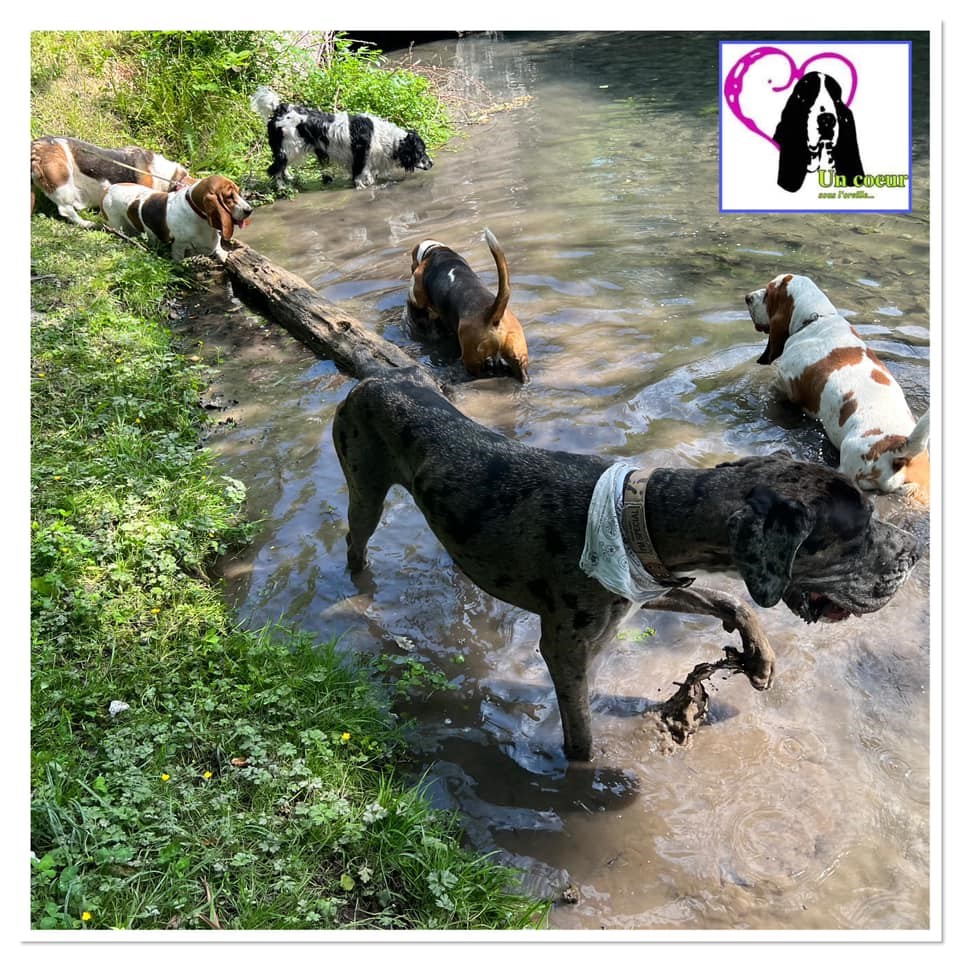 Excellente journée très ensoleillée et chaude, ce qui a permis de passer une agréable journée à l’ombre des saules pleureurs et d’avoir pu rafraîchir les chiens dans l’étang et le petit ruisseau, pour leur plus grand bonheur